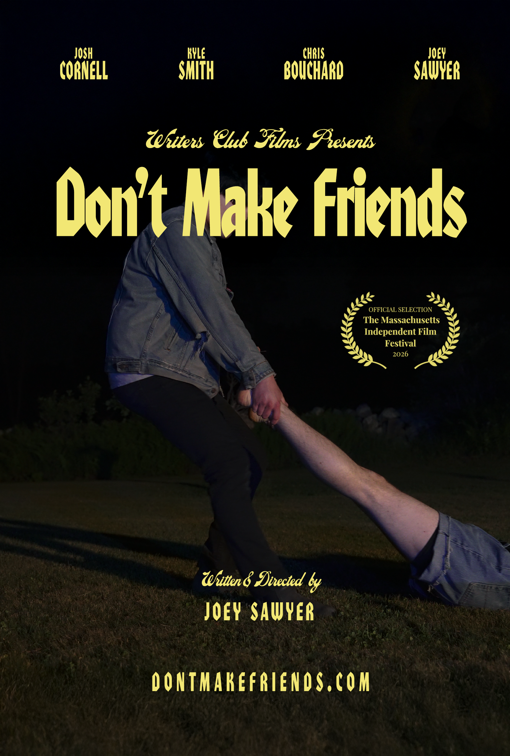 After college, the group continued to make short films, music videos, and sketches in the Boston area. In 2024, Sawyer finished his first feature length screenplay, and then he immediately finished a second! Don't Make Friends is that movie. Shot over the summer of '24 in southern Rhode Island, over 14 days, DMF was made with a skeleton crew and almost all non-actors.